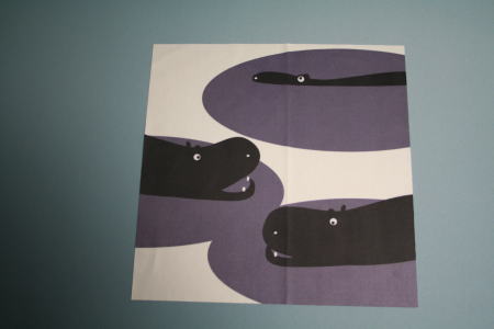 「スカイツリーのふもとの街で見つけました」というメッセージとともにいただいた。由緒ある手拭いのお店と、現代を象徴するスカイツリーとの接点にカバが登場したことが興味深い。
