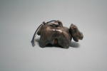 陶器製の土鈴。ヒモを持って振ると、カランカランと音が出る。作者・作成地不詳。