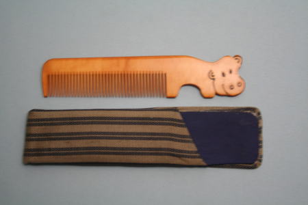 家族からのプレゼント。由緒あるお店の伝統的な櫛に、かわいいカバの顔がついていることに、ちょっと驚いた。