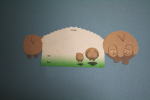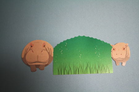 2種類のメモ用紙。一つはカバの親子と草原。もう一つはサバンナの木々。ともに裏は白く、メッセージを書くことができる。写真でうまく示せないが、それを右下の写真のように丸めて、立てることができる。