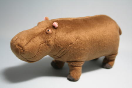 裏から布の何カ所かが縫い合わされていて、カバらしい体型が作られている。独自の造形に作者の苦心の跡がうかがわれる。