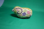 カバはフランス・ルーブル美術館のおみやげとしていただいたもの。陶器製のブルーヒッポは多いが、布製は珍しい。やわらかさを感じる。羊は飛騨高山の「真工芸」作。木綿に木版の手染めが美しい。