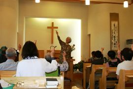 | 6月第二日曜日は例年「花の日」として教会学校の生徒と共に礼拝を守ります。 |