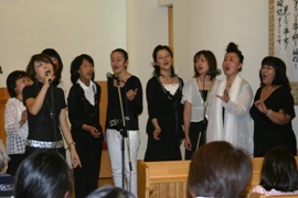 ↑(11)全員で「望みも消え行くまでに」を手話讃美しました。 |