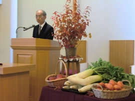 ↑(4)島しづ子牧師:題は「永遠に向かう種蒔き」でした。 |