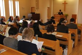 | 講師に杉本誠牧師(西尾教会)を招き、演題「家族を引き裂く偽預言者」で集会をもちました。 |