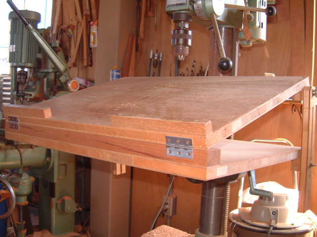 留め接ぎ状態でホゾ穴を開けてしまいますが、写真のボール盤でのホゾ